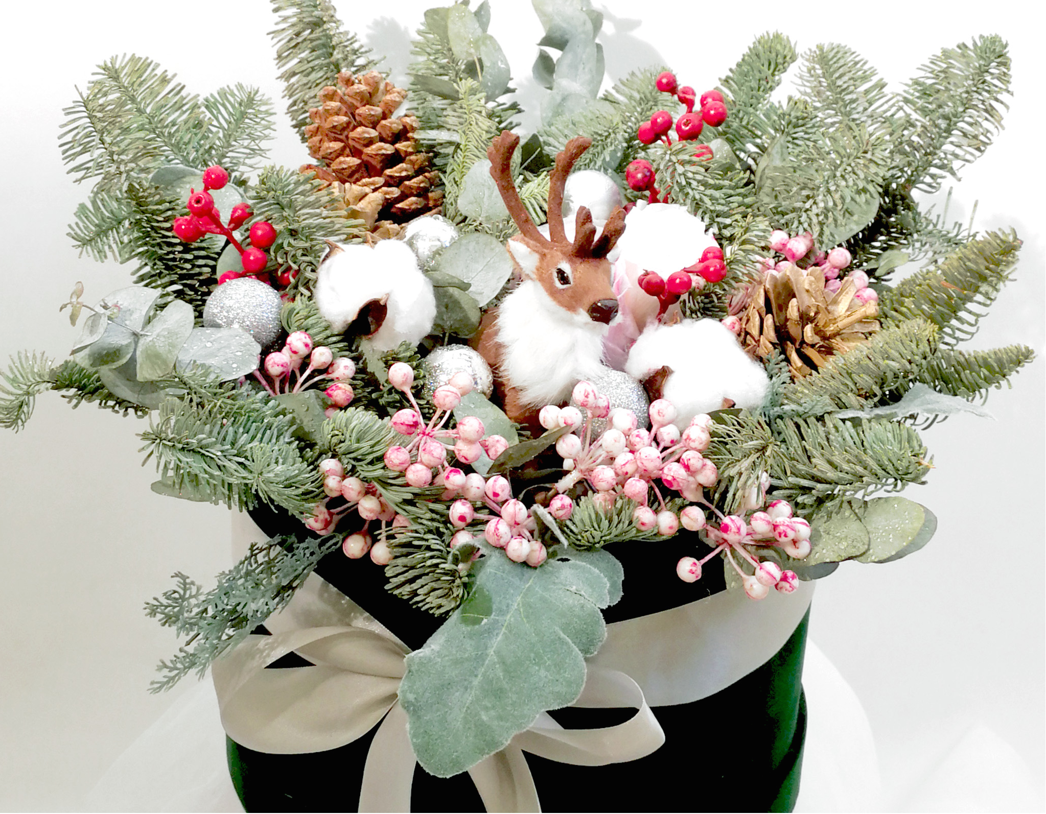 Christmas Noble Pine with Dry Floral Gift Box