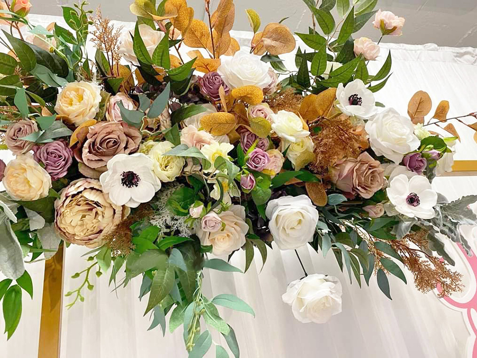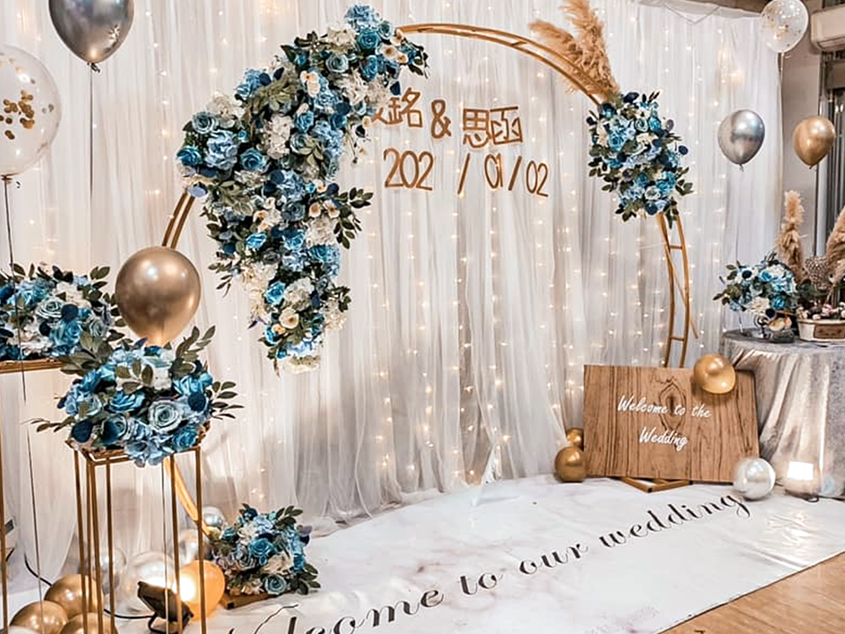 包括主要提供主題婚禮佈置、絲花配合鮮花裝飾,室內外拱門、歡迎板佈置,歡迎桌盆花、樓梯裝飾、垂吊裝飾、吊掛花藝、氣球佈置、嘉賓席佈置等等。請與我們洽詢或提供參考材料以備進一步設計方案。